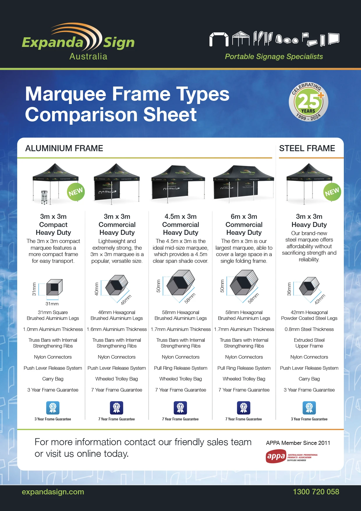 Our commercial marquees are designed for durability and to deliver big advertising impact, including optional extras to meet your specific requirements. We offer a variety of printing options so you can customise your marquee to meet your vision. Stand out from the crowd with our quality designs and experience the Expandasign difference.